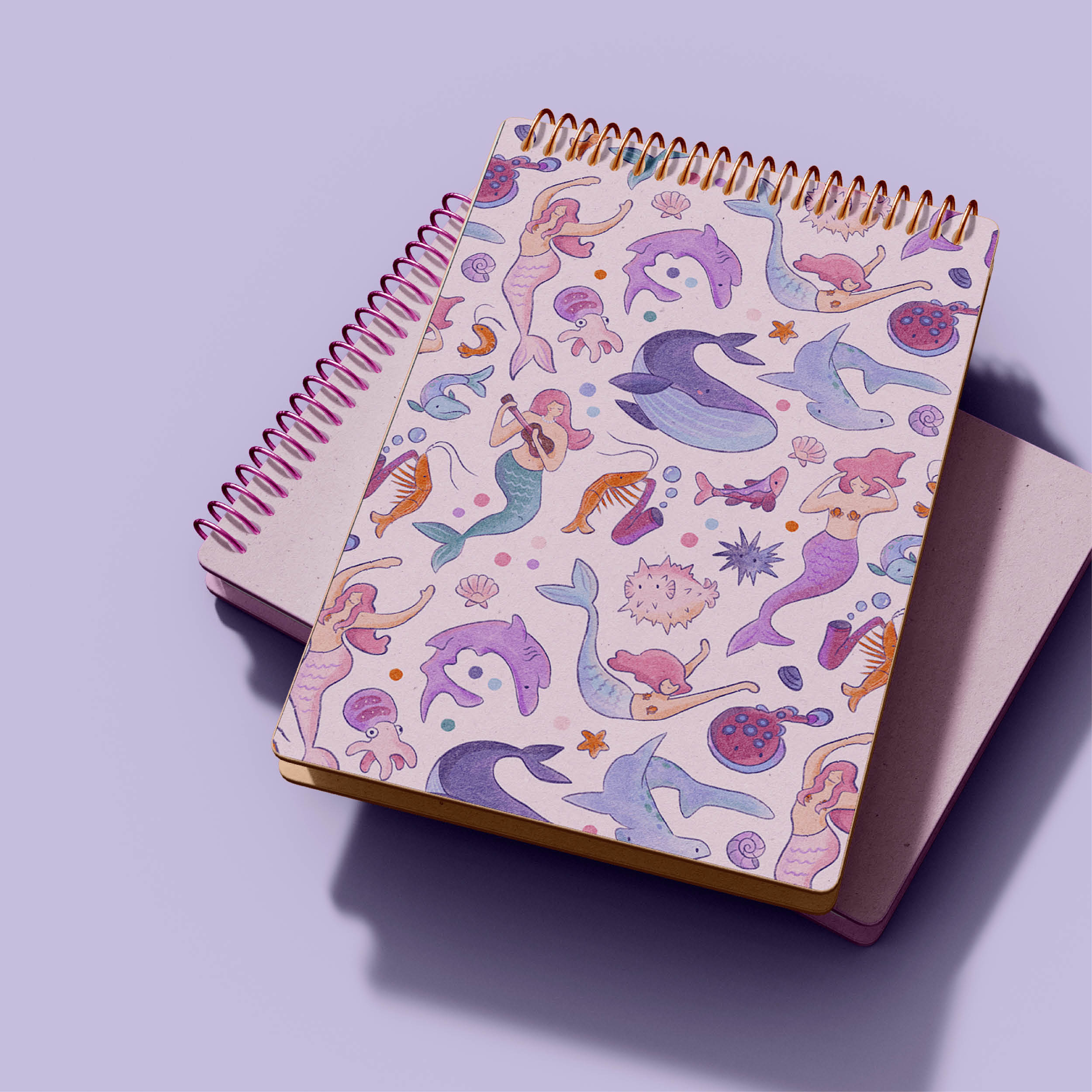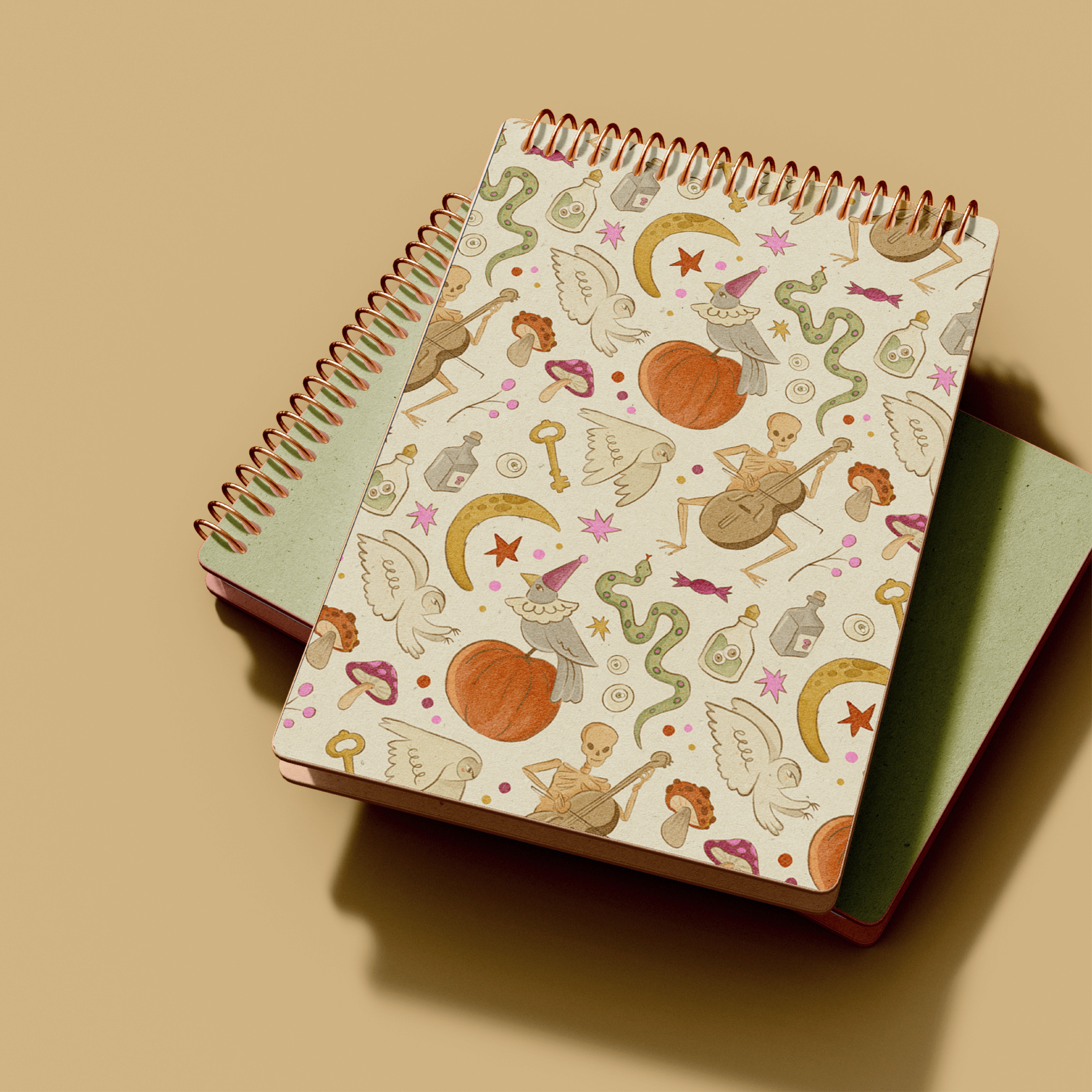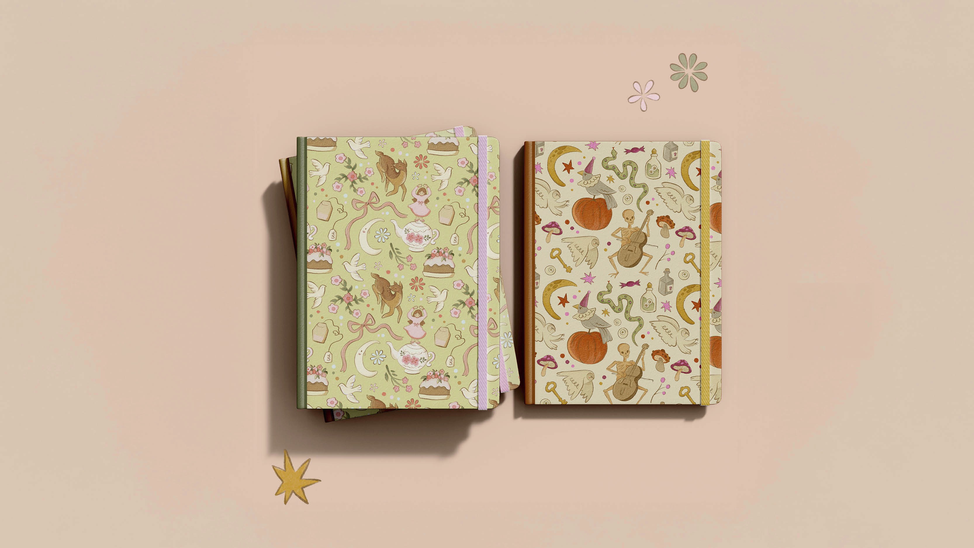 Série de carnets de motifs à thème, entièrement dessinés à la main, explorant des univers variés comme Halloween, le tea time coquette ou le monde marin et des sirènes. Chaque carnet propose des illustrations au style enfantin, aux couleurs douces et chaleureuses, pensées pour évoquer la douceur, l’imaginaire et le plaisir du dessin, tout en offrant des motifs répétitifs adaptés à différents usages créatifs.